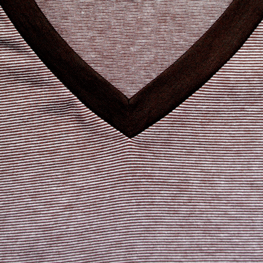 V-necked, figure friendly striped tee, available in assorted colours for matching with your gal. Men: Striped V-Neck Top | Material: 100% Cotton |
